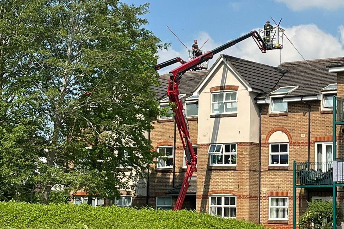 Gutter blockages affecting three commercial buildings near Heathrow.